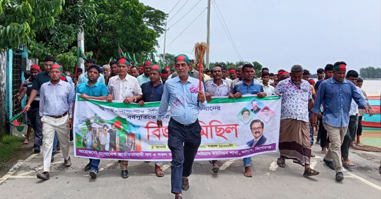 অষ্টগ্রামপ্রতিনিধি, কিশোরগঞ্জের হাওর উপজেলা অষ্টগ্রামে জুলাই গনঅভ্যুত্থানের ধারাবাহিকতায় ৫ আগষ্ট আওয়ামী ফ্যাসিবাদের পতন ও ছাত্র-জনতার বিজয়ের বর্ষপুর্তিপালন উপলক্ষে অষ্টগ্রাম উপজেলা বিএনপি, সকল অঙ্গ ও সহযোগী সংগঠন এক বিজয় র্যালীর আয়োজন করে ।