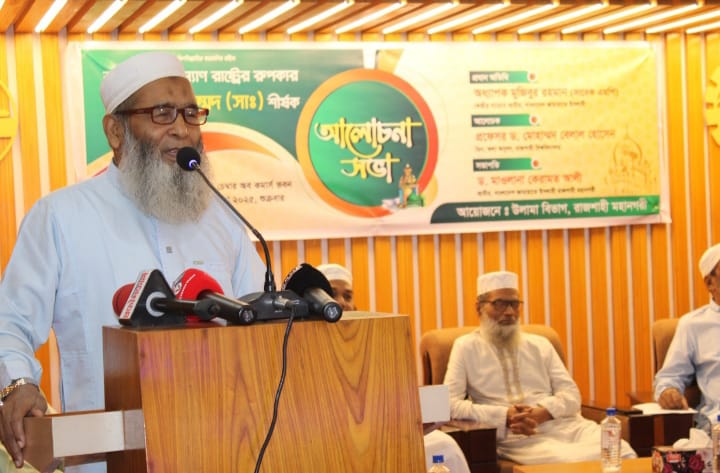 বাংলাদেশ জামায়াতে ইসলামী রাজশাহী মহানগরীর ওলামা বিভাগের উদ্যোগে আধুনিক ও কল্যান রাষ্ট্রের রুপকার বিশ্বনবী হযরত মুহাম্মদ (সা:) শীর্ষক আলোচনা সভা অনুষ্ঠিত হয়েছ। শুক্রবার সকাল ৯.০০ রাজশাহী চেম্বার অব কমার্স ভবনে আলোচনা সভাটি অনুষ্ঠিত হয়। আলোচনা সভায় প্রধান অতিথি হিসেবে বক্তব্য রাখেন বাংলাদেশ জামায়াতে ইসলামীর কেন্দ্রীয় নায়েবে আমীর রাজশাহী-১ আসনের সাবেক এমপি অধ্যাপক মুজিবুর রহমান।