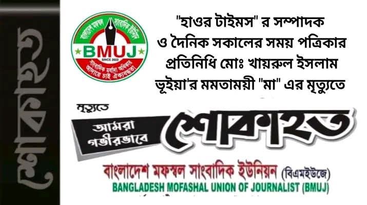 অনলাইন পত্রিকা 'হাওর টাইমস ও দৈনিক উজানভাটি' র সম্পাদক হাকীম মো. খায়রুল ইসলাম ভূইয়ার মা বেলুয়ারা খাতুন আর নেই।