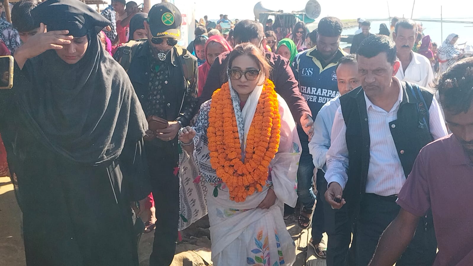 কিশোরগঞ্জ ৪ আসনে স্বতন্ত্র প্রার্থী কাজী রেহা কবির সিগমা কে হাওরবাসির বিশাল গণ সংবর্ধনা : স্টাফ রিপোর্টার : মার্কা কিংবা দল নয় , যোগ্যতায় পরিচয় এ স্লোগানকে সামনে রেখে আসন্ন এয়োদশ জাতীয় সংসদ নির্বাচনে কিশোরগঞ্জ ৪ ( ইটনা - মিঠামইন ও অষ্টগ্রাম ) আসনে জাতীয় সংসদ নির্বাচনে স্বতন্ত্র প্রার্থী বিশিষ্ট্য সমাজসেবক , গবেষক ও উদ্যোক্তা কাজী রেহা কবির সিগমা কে ফুল দিয়ে গণ সংবর্ধনা দিয়েছে হাওড়া বাসি | আজ বৃহস্পতিবার তার নির্বাচনী এলাকায় ঢাকা থেকে ফেরার পথে তাকে এ সংবর্ধনা দেওয়া হয় | প্রথমে বাজিতপুর পাটুলি ঘাটে পৌঁছার সময় কিশোরগঞ্জের ইটনা , মিঠামইন ওঅষ্টগ্রাম এলাকার বিপুল সংখ্যক উৎসুক জনতা কাজী রেহা কবীর সিগমাকে ফুলের মালা দিয়ে বরণ করেন | এ সময় সারা এলাকায় স্লোগান স্লোগানে মুখরিত হয়ে পড়ে | প্রাণের নেত্রীকে কাছে পেয়ে হাজার হাজার নারী পুরুষ উল্লাসে ফেটে পড়ে | সংবর্ধনা শেষে তিনি হাওরের ভাতশালা ও জিরো পয়েন্টের নানা স্থানের এলাকার জনগণের আয়োজনে পথসভায় বক্তব্য রাখেন তিনি এবং সাধারন মানুষের সাথে কুশল বিনিময় করেন | পরে তিনি অষ্টগ্রামের ঐতিহাসিক শাহ কুতুব ( রহ : ) মসজিদ সংলগ্ন কবরস্থানে গিয়ে কবর জিয়ারত করেন | দিন ব্যাপী এ কর্মসূচীর সময় তার কর্মী ও সমর্থকরা সাধারন মানুষের মাঝে লিফলেট বিতরণ করেন এবং ব্যাপক গণসংযোগ চালানো হয় | উল্লেখ্য , কিশোরগঞ্জ ( ৪ )১৬৪ ইটনা, মিঠামইনএবং অস্টগ্রাম এ তিন উপজেলা নিয়ে গঠিত আসনটি | এ আসনটিতে মোট ইউনিয়ন ২৪টি এবং ভোটকেন্দ্র হচ্ছে ১৫০ টি এখানে মোট ভোটার সংখ্যা হচ্ছে নারী-পুরুষ সবমিলিয়ে এখন পর্যন্ত ৪ লক্ষ ৩৭ হাজার ৬৪জন |