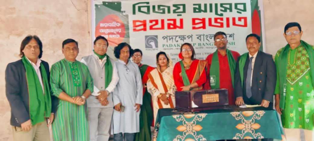 বিজয়ের শুভেচ্ছা। পদক্ষেপ বাংলাদেশ-এর আয়োজন, কর্মসূচী ব্যতিক্রম ও বৈচিত্র্যময়। তারই ধারাবাহিকতায় ঢাকার পরিবাগস্থ সংস্কৃতি বিকাশ কেন্দ্রের উন্মুক্ত মঞ্চে জাতীয় সংগঠন ও শিল্পীদের অংশগ্রহণে ‘বিজয় মাসের প্রথম প্রভাত’ শীর্ষক আলোচনা ও সাংস্কৃতিক অনুষ্ঠান ১ ডিসেম্বর ২০২৫, সোমবার সকাল ৭টায় অনুষ্ঠিত হয়েছে।