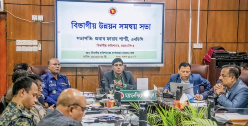 ময়মনসিংহ বিভাগের সকল বিভাগীয় দপ্তরের কার্যধারার অগ্রগতি ও সর্বশেষ পরিস্থিতি জানতে আজ ২৩ ডিসেম্বর মঙ্গলবার বিভাগীয় কমিশনারের কার্যালয়ে এক সমন্বয় সভা অনুষ্ঠিত হয়। এতে সভাপতিত্ব করেন ময়মনসিংহ বিভাগের অতিরিক্ত বিভাগীয় কমিশনার (সার্বিক) কাজী জিয়াউল বাসেত।স্থানীয় সরকার বিভাগের উপপরিচালক বিপিন চন্দ্র বিশ্বাসের সঞ্চালনায় ময়ময়সিংহ রেঞ্জ ডিআইজি, ময়মনসিংহ সিটি কর্পোরেশনের (মসিক) প্রধান নির্বাহী কর্মকর্তা, বিভাগের অন্তর্গত চার জেলার জেলা প্রশাসকের প্রতিনিধি, বিভাগীয় অন্যান্য সকল সরকারি দপ্তরের প্রধানগণ সভায় উপস্থিত ছিলেন।