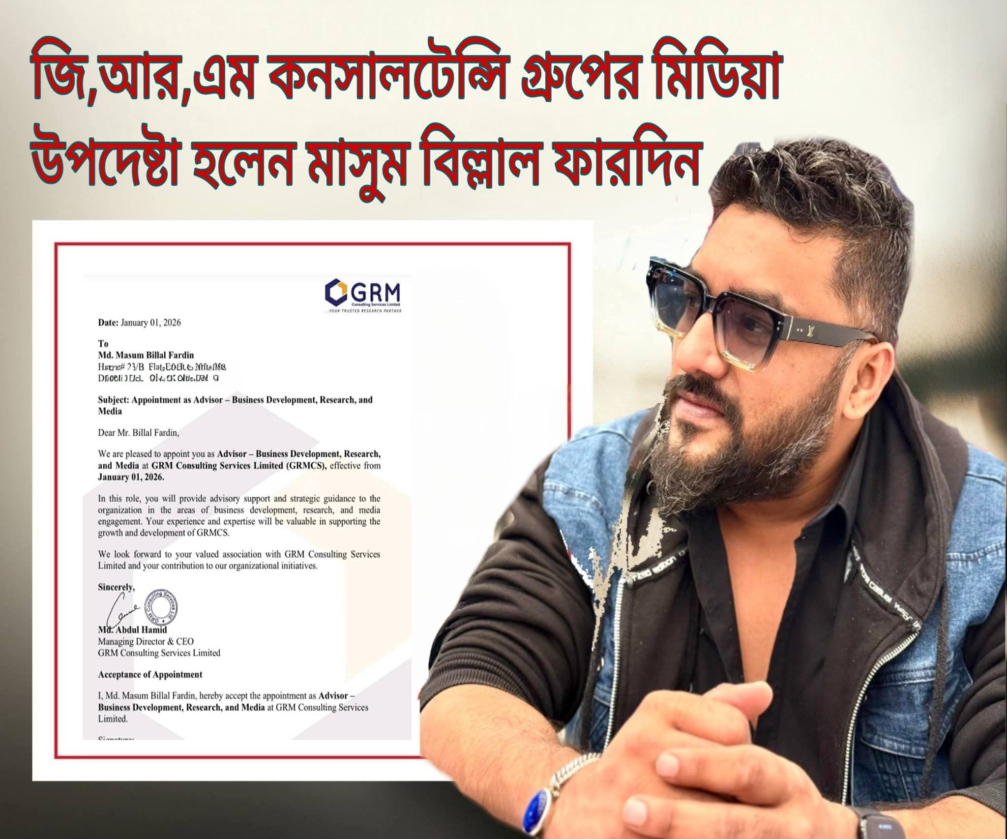 দেশের স্বনামধন্য করপোরেট প্রতিষ্ঠান জি, আর, এম কনসালটেন্সি গ্রুপ–এর মিডিয়া উপদেষ্টা হিসেবে নিয়োগ পেয়েছেন সাংস্কৃতিক ও সামাজিক অঙ্গনের পরিচিত মুখ মাসুম বিল্লাল ফারদিন। সম্প্রতি প্রতিষ্ঠানটির শীর্ষ পর্যায় থেকে এ তথ্য নিশ্চিত করা হয়েছে।