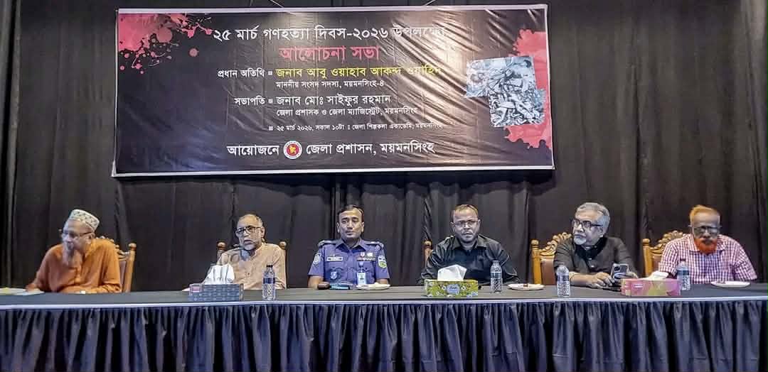 বাংলাদেশের ইতিহাসে এক কালো অধ্যায় ২৫শে মার্চের গণহত্যা। গণহত্যা দিবস-২০২৬ উপলক্ষ্যে ময়মনসিংহ জেলা প্রশাসনের আয়োজনে এক আলোচনা সব অনুষ্ঠিত হয।