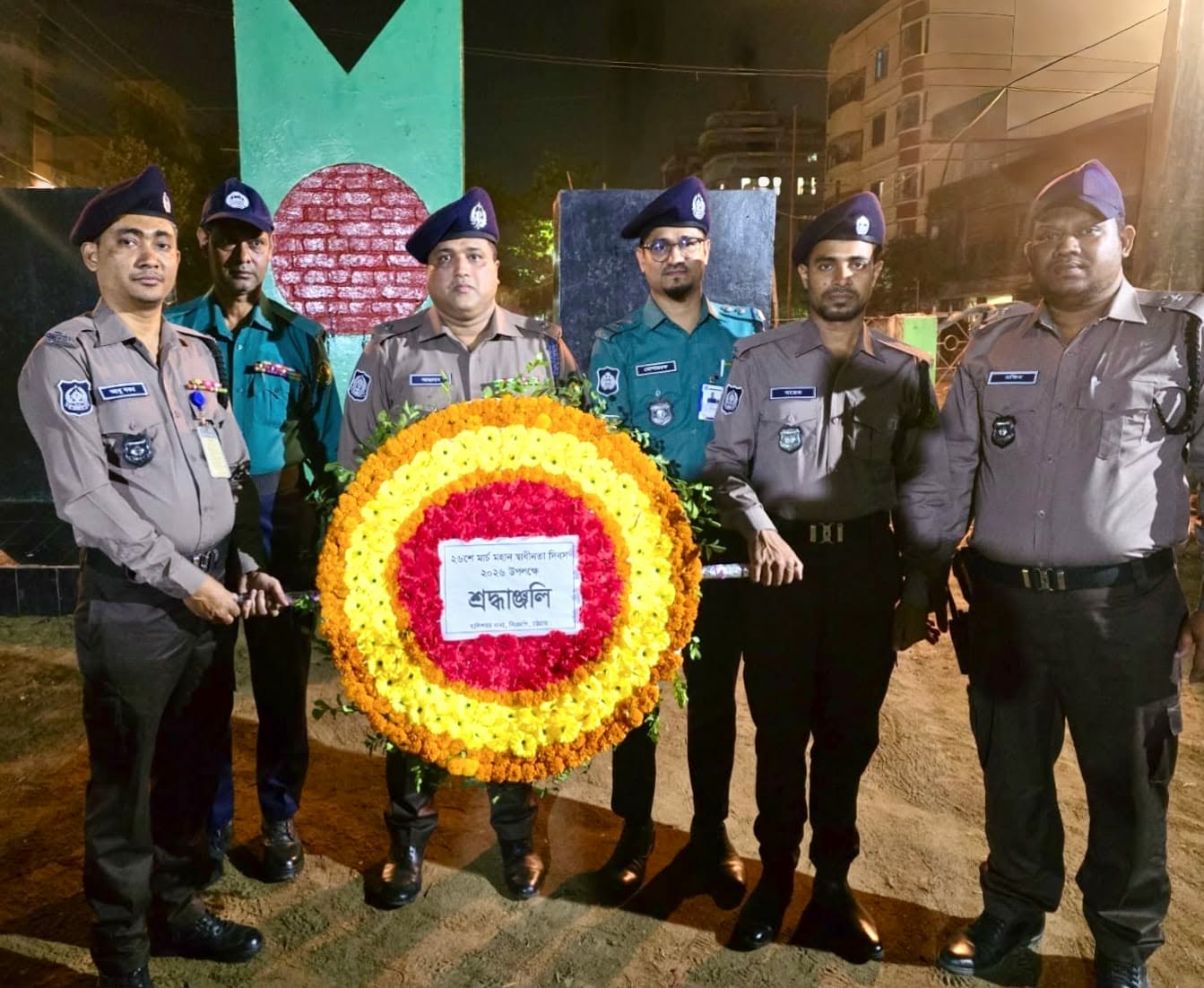 ২৬ শে মার্চের প্রথম প্রহরে ১২ টা ১ মিনিটে হালিশহর থানার অফিসার ইনচার্জ কাজী সুলতান আহসান এর নেতৃত্বে শহীদ মিনারে পুষ্পস্তবক অর্পণ করে শহীদদের স্মরণে শ্রদ্ধা নিবেদন করেন হালিশর থানা পুলিশ।