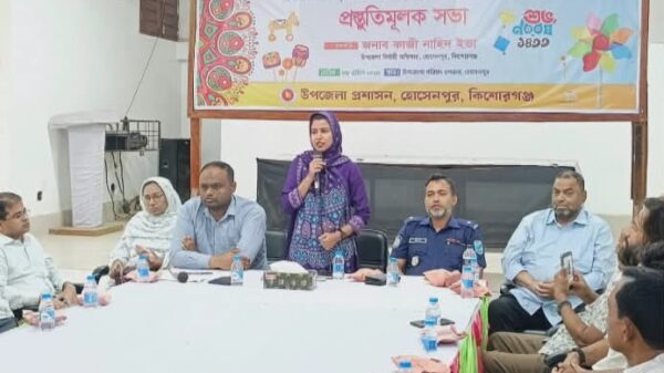 এসকে শাহীন নবাবহোসেনপুর (কিশোরগঞ্জ) :কিশোরগঞ্জের হোসেনপুরে যথাযোগ্য মর্যাদায় ও আনন্দঘন পরিবেশে বাংলা নববর্ষ (পহেলা বৈশাখ)-১৪৩৩ উদযাপন করার লক্ষ্যে এক প্রস্তুতিমূলক সভা অনুষ্ঠিত হয়েছে।বুধবার (৮ এপ্রিল) হোসেনপুর উপজেলা পরিষদ হলরুমে উপজেলা