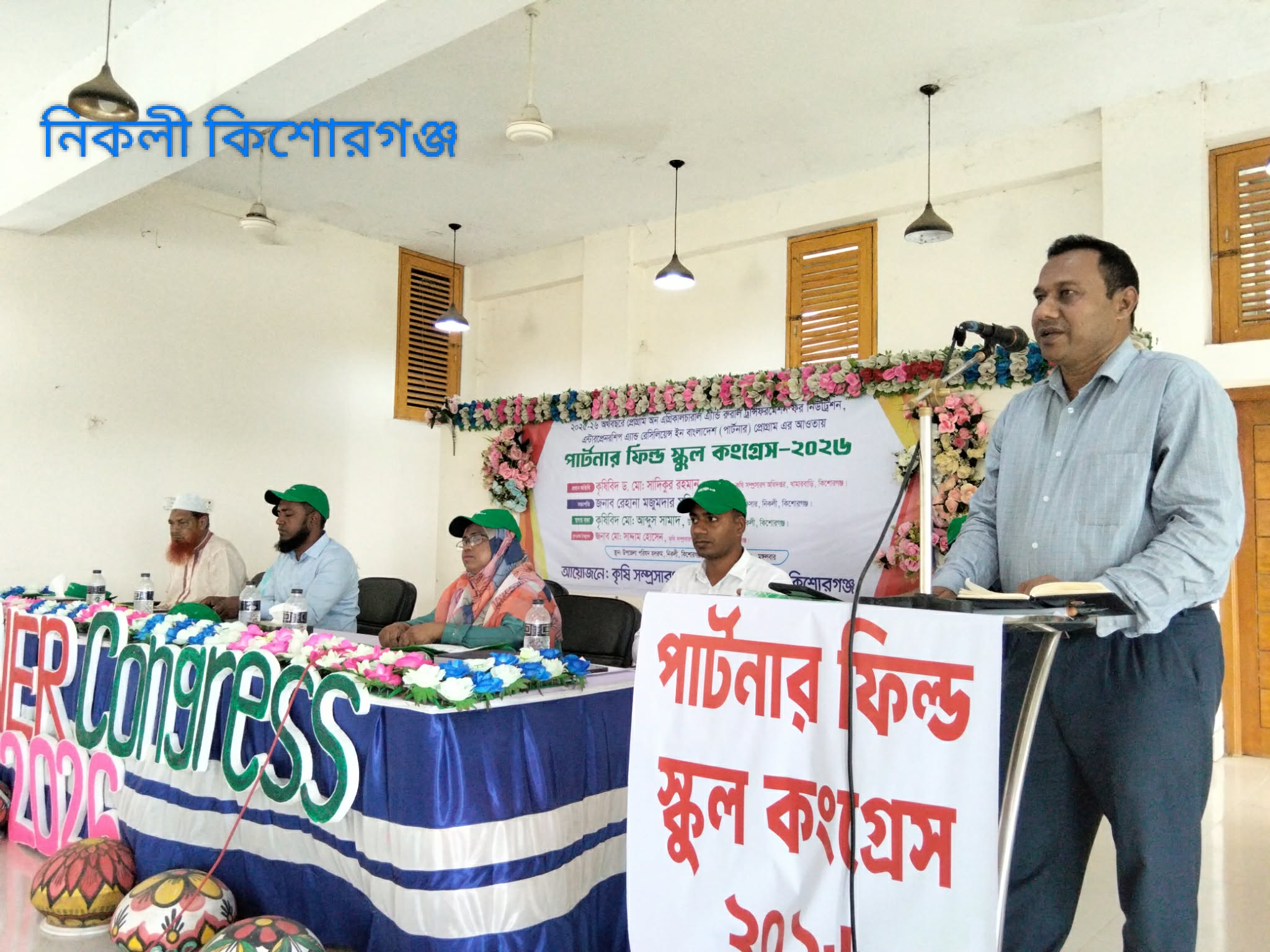 কিশোরগঞ্জের নিকলীতে ২০২৫-২৬ অর্থ বছরে প্রোগ্রাম অন এগ্রিকালচার এ্যান্ড রুরাল ট্রান্সফরমেশন ফর নিউট্রিশন এন্টারপ্রেনরশিপ এ্যান্ড রেসিলিয়েন্স ইন বাংলাদেশ (পার্টনার) প্রোগ্রাম এর আওতায় পার্টনার ফিল্ড স্কুল কংগ্রেস ২০২৬ অনুষ্ঠিত হয়েছে, (২১ এপ্রিল ২০২৬) রোজ মঙ্গলবার সকাল এগারো ঘটিকায় নিকলী উপজেলা পরিষদ হলরুমে নিকলী কৃষি সম্প্রসারণ অধিদপ্তরের আয়োজনে নিকলী উপজেলা নির্বাহী অফিসার ও এক্সিকিউটিভ ম্যাজিস্ট্রেট এবং উপজেলা প্রশাসক রেহানা মজুমদার মুক্তি'র সভাপতিত্বে,মূল প্রবন্ধ উপস্থাপক ছিলেন নিকলী উপজেলা কৃষি সম্প্রসারণ অফিসার মোঃ সাদ্দাম হোসেন, প্রধান অতিথি হিসেবে উপস্থিত ছিলেন কৃষিবিদ ড. মোঃ সাদিকুর রহমান উপপরিচালক কৃষি সম্প্রসারণ অধিদপ্তর খামার বাড়ি কিশোরগঞ্জ, অনুষ্ঠানটিতে স্বাগত বক্তব্য রাখেন নিকলী উপজেলা কৃষি অফিসার কৃষিবিদ মোঃ আব্দুস সামাদ, বিশেষ অতিথি হিসেবে উপস্থিত ছিলেন কিশোরগঞ্জ জেলার কৃষি অধিদপ্তরের জেলা প্রশিক্ষণ কর্মকর্তা কৃষিবিদ মোঃ হারুনুর রশিদ, সমবায় অফিসার সালেহা খাতুন, নিকলী উপজেলা মুক্তিযোদ্ধা ইউনিট কমান্ডের কমান্ডার মোজাম্মেল হক আবীর, দামপাড়া ইউনিয়ন পরিষদের চেয়ারম্যান আলহাজ্ব মোঃ আনোয়ার হোসেন,নিকলী উপজেলার বিভিন্ন ইউনিয়নের কৃষক কৃষাণী গণ,সাংবাদিক গণ সহ নিকলী উপজেলার কৃষি অফিসের সকল কর্মকর্তা কর্মচারী বৃন্দ প্রমুখ, অনুষ্ঠানটি সঞ্চালনা করেন নিকলী উপজেলা উপসহকারী উদ্ভিদ সংরক্ষণ কর্মকর্তা গোলাম মোস্তফা,